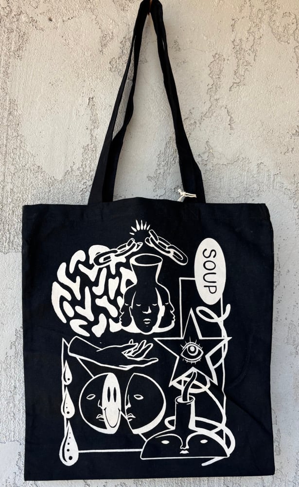 hand screen printed 100% cotton 14.5"x15.5" tote bag with 22" handles